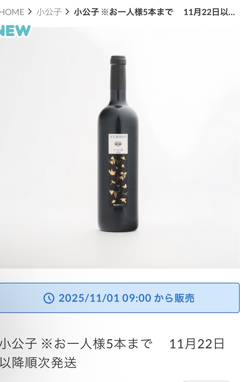 そういえば、小公子ワインの販売がスタートしたので、オンライン販売開始と同時にサイトにアクセスし注文しました。